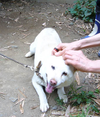 クロちゃんが「もう1匹が吠えた時一緒に吠える」といってたもう1匹は白い柴ちゃんです。12歳のメスでクロちゃんよりも二まわりくらい小ぶり。姉さんって感じなのかしら・・・