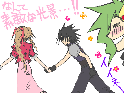 コスプレなさってる方が買って下さった時に思わず「カッコイイですね!」とか「かわいい!」とかうっかり感想がダダもれです(笑) いやもうホント目の保養だった・・・スペの位置からコススペースがよく見えたので暇なときは常にガン見でしたね。すごいなー。キャラ同士一緒にいるとかわいらしくて、上図のようにザックスの手を引っ張ってるエアリスさんとか見かけて超もえてました(笑)
