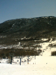 この時期&この天気でもう雪も限界ということで標高高い浅間をチョイス。浅間って結構高かったのね・・・。それでも午前中リフトで登るごとに雪が解けていく気温。雪はあっても暑かった。伊達に桜も開花しません。